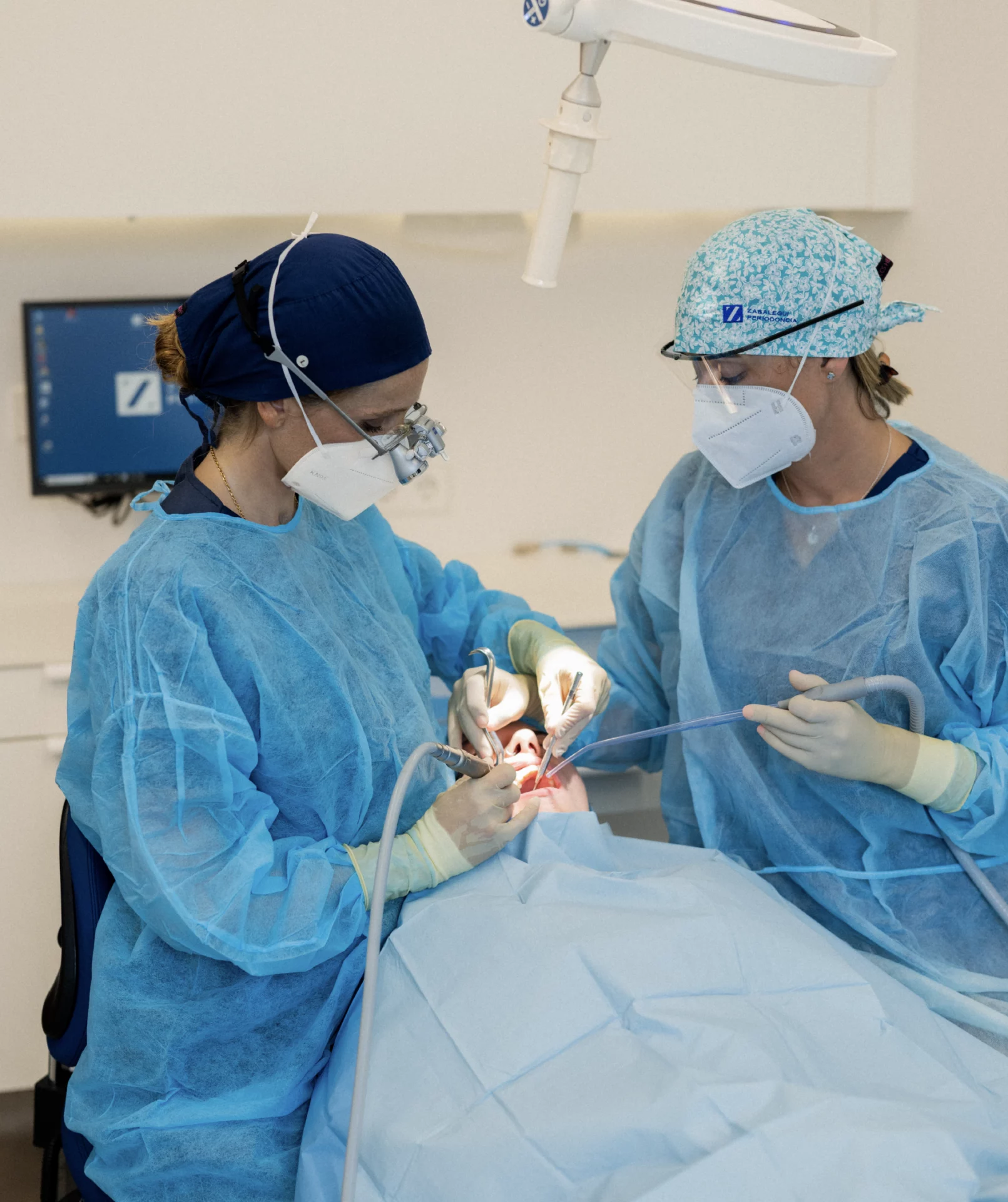 Para evitar molestias en la cicatrización y mejorar el tiempo de curación, usamos microcirugía, microscopio dental y lupas de aumento desde 1996.