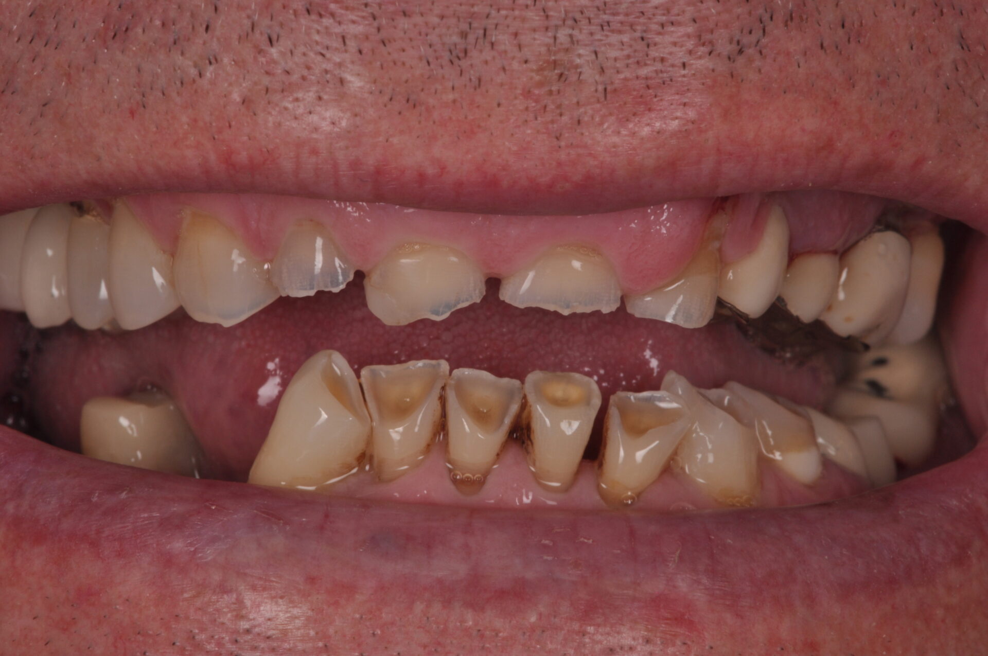 La relación entre la dieta rica en fruta y verdura con un cepillado inadecuado y erosivo, puede conllevar un excesivo desgaste del esmalte con la aparición de destrucciones de las estructuras dentarias que afectan no solo a la capacidad masticatoria sino también al aspecto envejecido de la sonrisa.